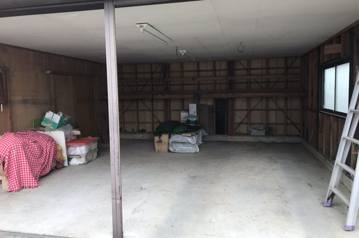 そしてこちらは車庫内の様子。お昼過ぎにはこちらも必要なモノだけ残し全て完了しました。お見積りにお伺いしてから1週間以内で作業完了です。最後にスッキリかたづいたお部屋をクリーニングしたいとのご要望もありましたのでハウスクリーニング業者さんもご紹介させていただきました。